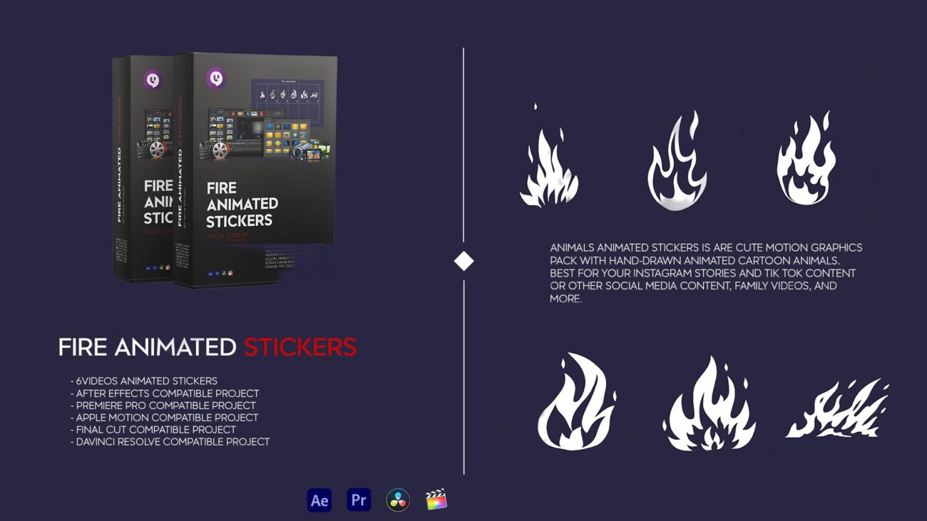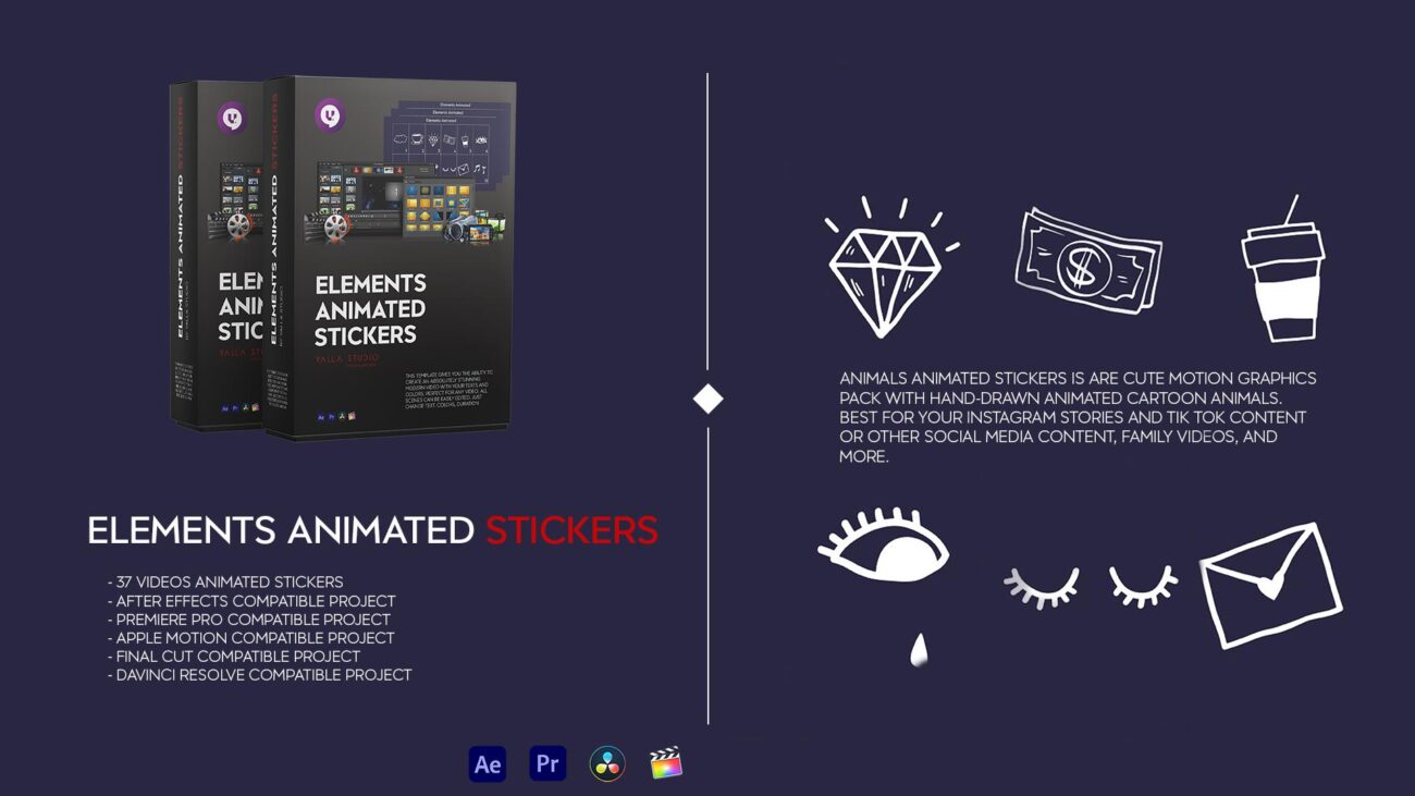 Elements Animated Stickers This template gives you the ability to create an absolutely stunning modern video with your texts and colors. Perfect for any video. All scenes can be easily edited. Just change colors, duration etc.