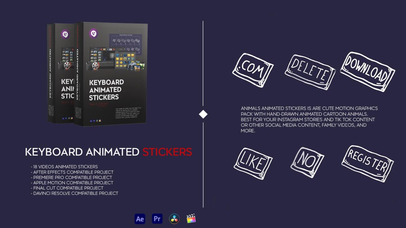 Keyboard Animated Stickers This template gives you the ability to create an absolutely stunning modern video with your texts and colors. Perfect for any video. All scenes can be easily edited. Just change colors, duration etc.