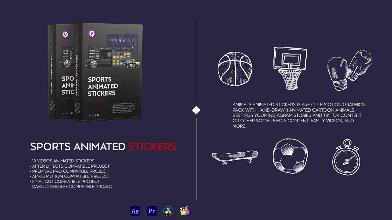 Sports Animated Stickers This template gives you the ability to create an absolutely stunning modern video with your texts and colors. Perfect for any video. All scenes can be easily edited. Just change colors, duration etc.