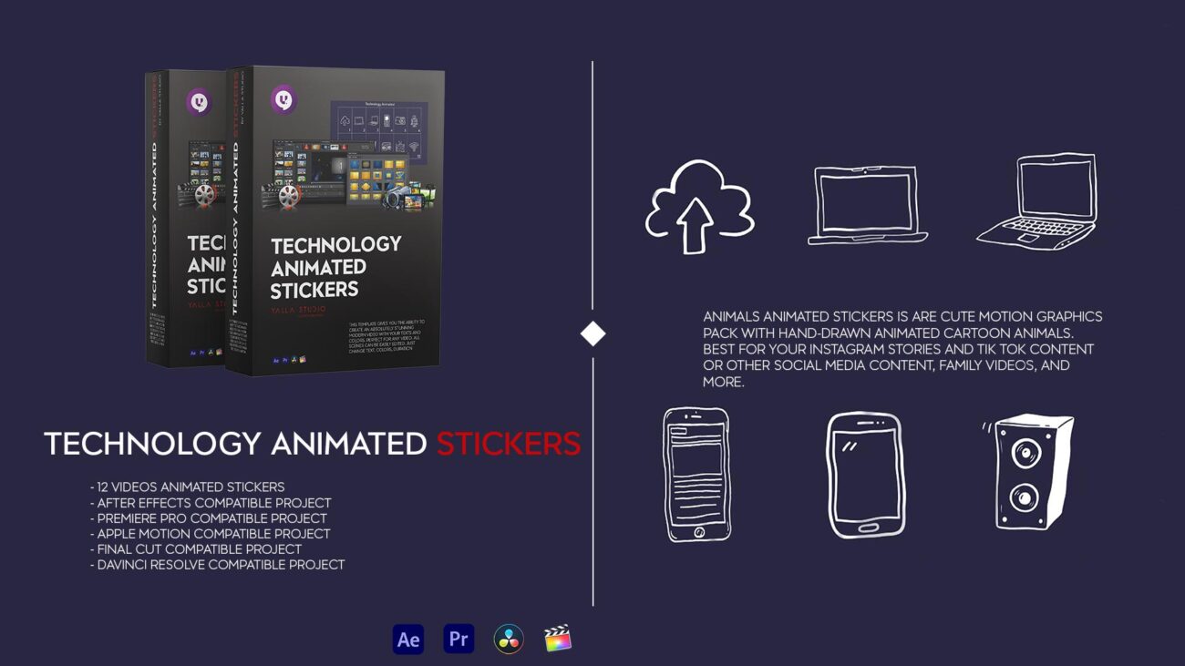 Technology Animated Stickers This template gives you the ability to create an absolutely stunning modern video with your texts and colors. Perfect for any video. All scenes can be easily edited. Just change colors, duration etc.