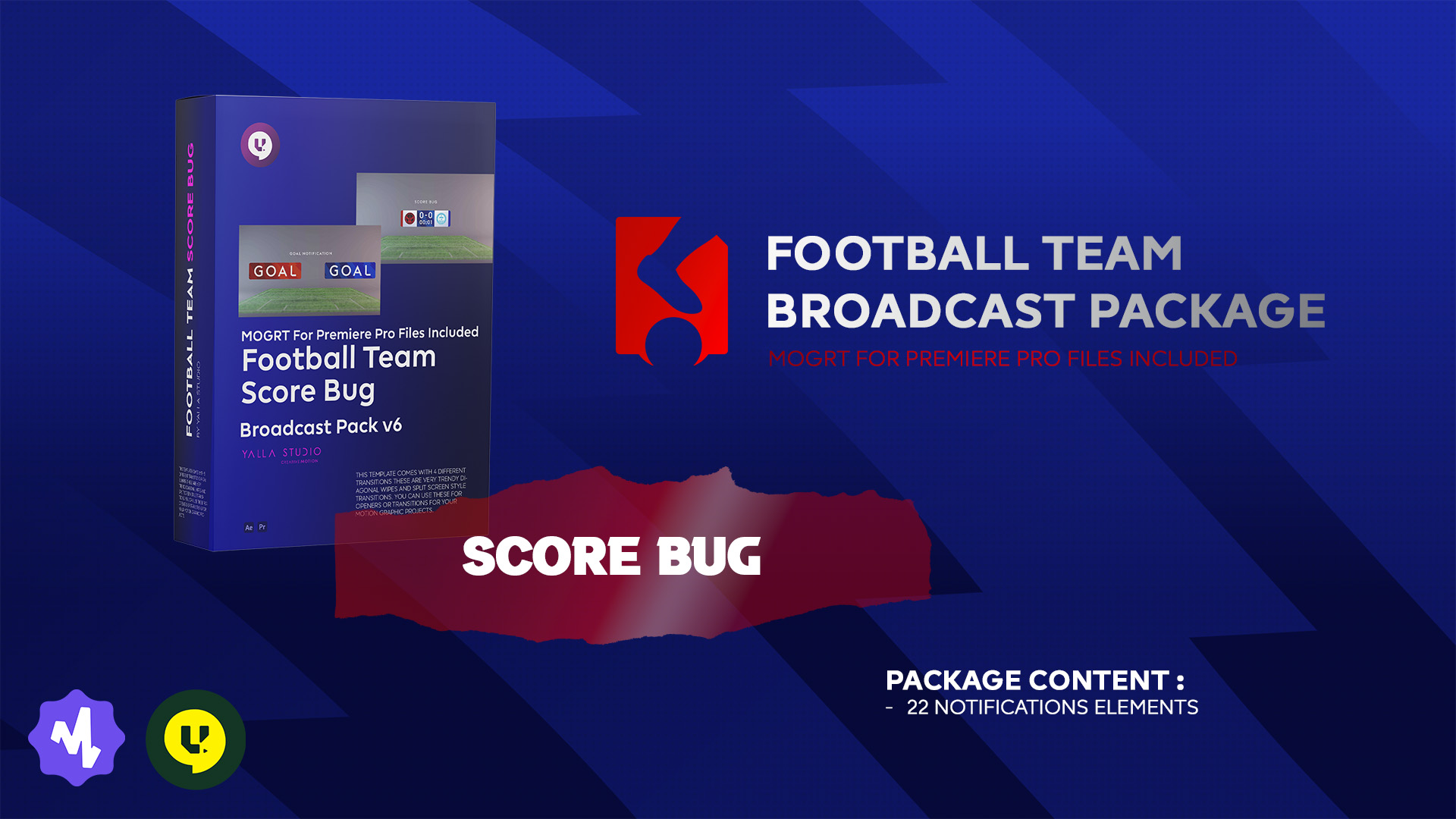 Group of Score Bug & text animation in one pack “22 Elements”, special action with advanced touch,designed specially for you to use it for your vlog promo, youtube video, broadcast tv, advertising promo, intro or any motion graphics field.