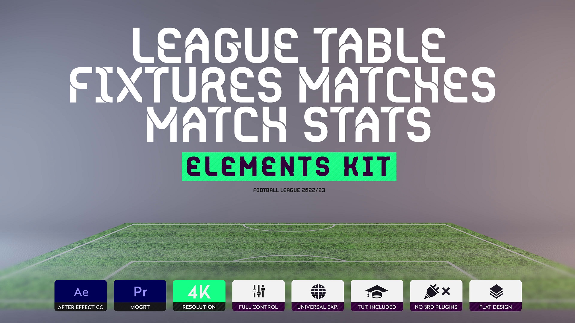 League Table – Fixtures Matches – Match Stats created for a Soccer Championship. Package includes League Table, Fixtures Matches, Match Stats. elements needed for On-air live broadcasting. Super easy to customize, choose your text layer and update the required text, add your own images and video and you are done! All editing is done with The Essential Graphics panel in Premiere Pro andAfter Effects for ultimate familiarity and ease of use.