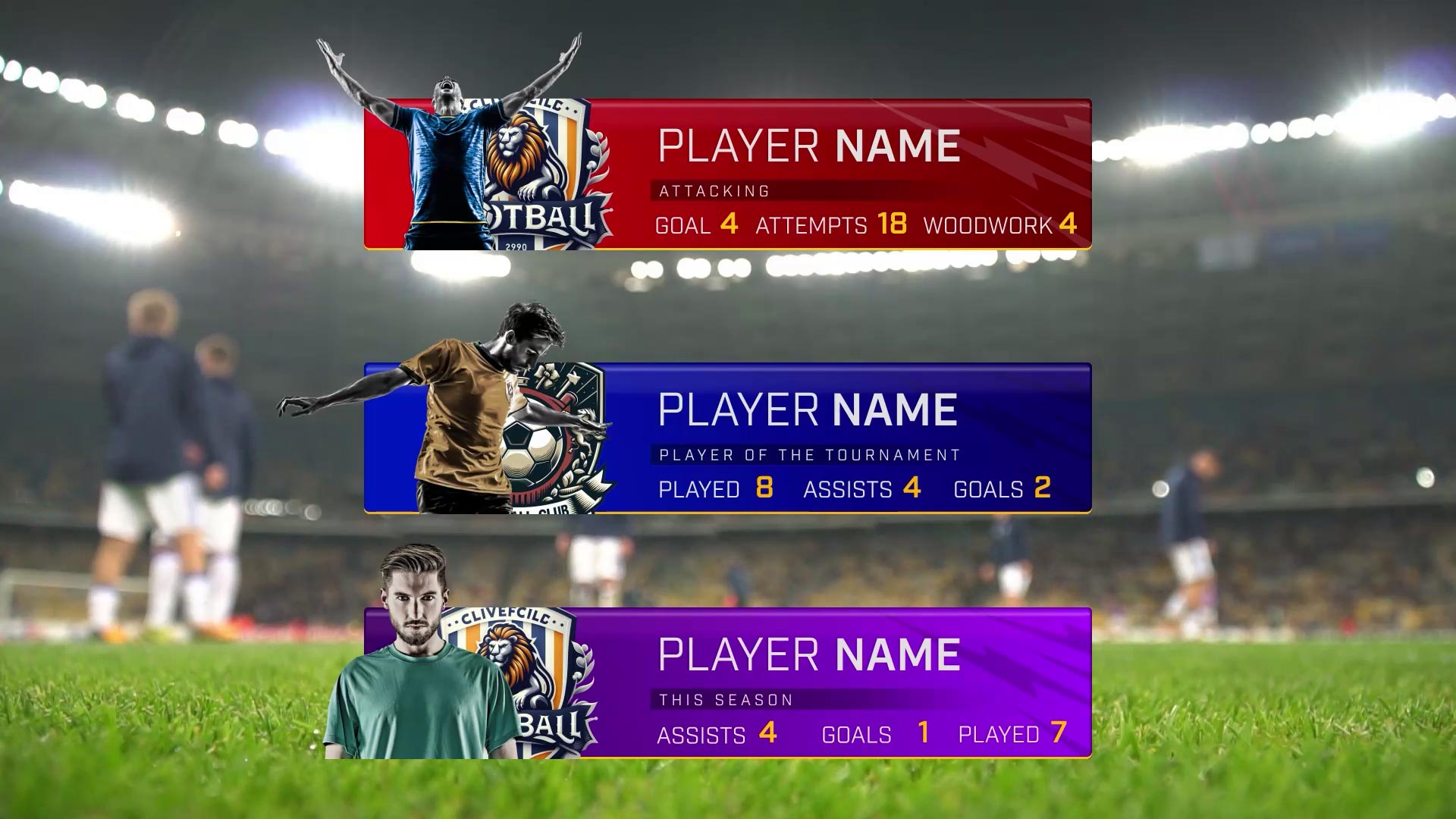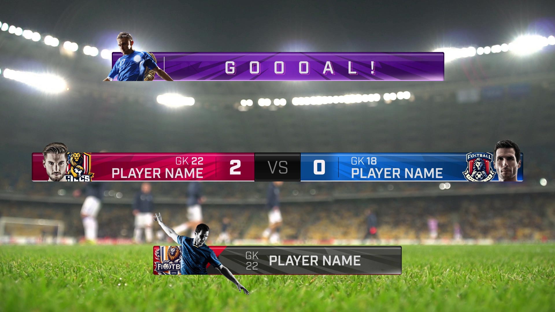 Elevate your sports broadcasts with the Sport Lower Thirds Kit, offering a suite of 8 vibrant animations to showcase player profiles, game stats, and scores with a professional touch. Tailored for Football, basketball, hockey, wrestling or any other sports., these dynamic lower thirds feature customizable colors, editable text, and image or video placeholders, ideal for any sports tournament, championship, or league. Enhance your sports-related content across television, social media, and stadium screens, keeping viewers engaged and informed in real-time.