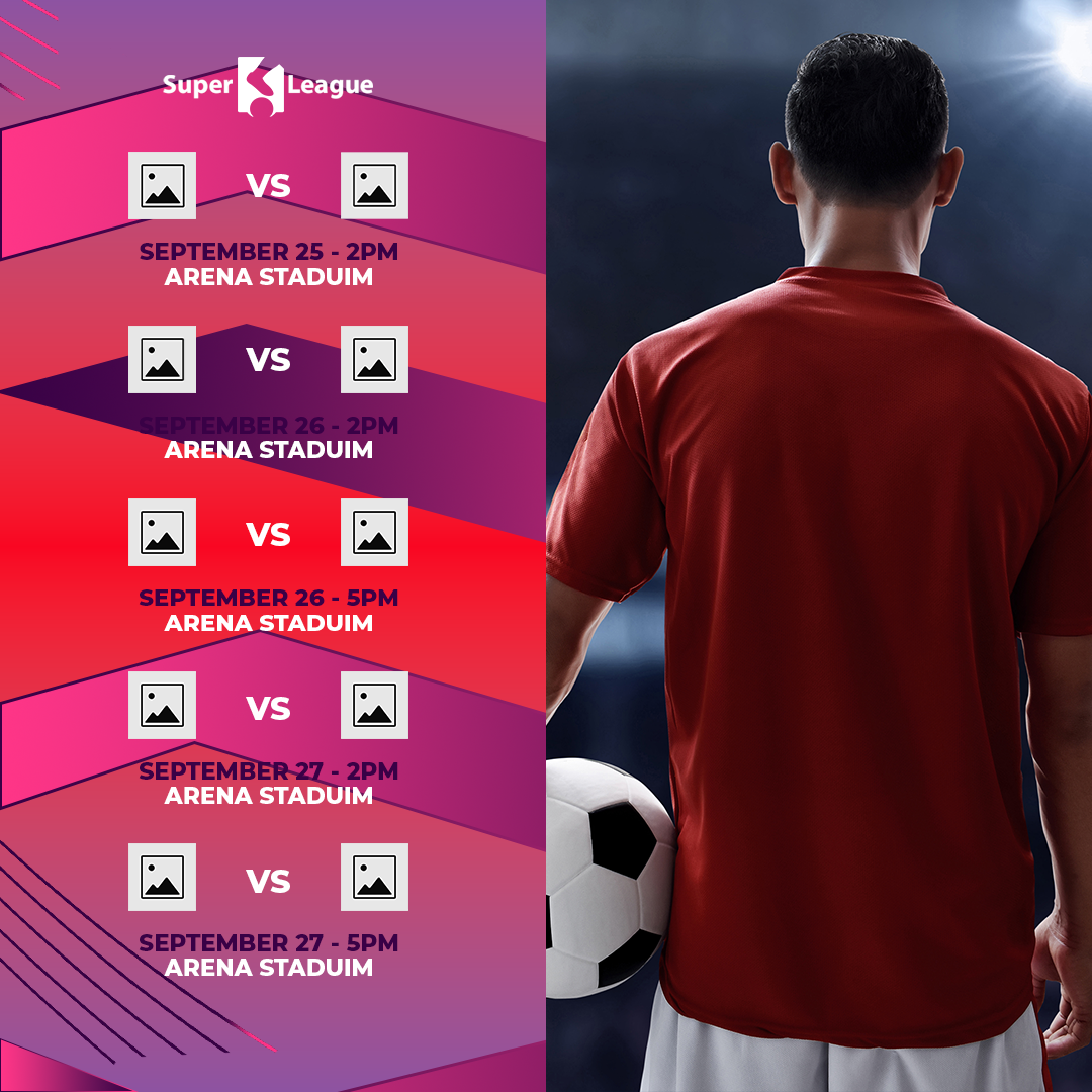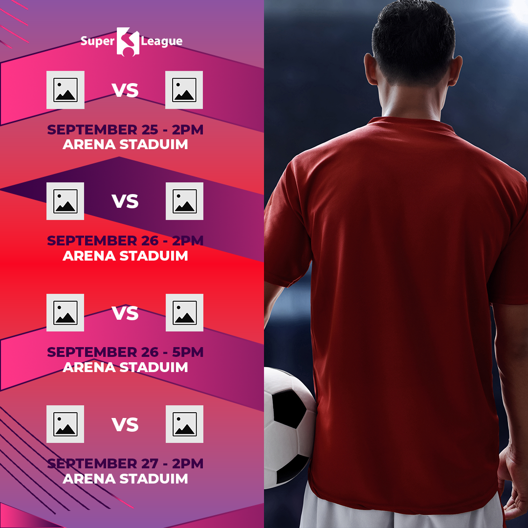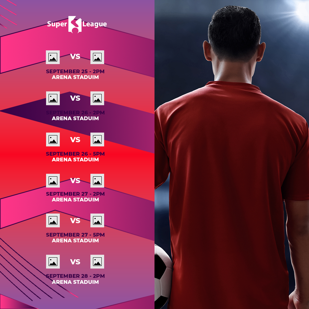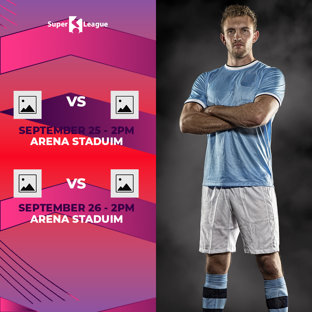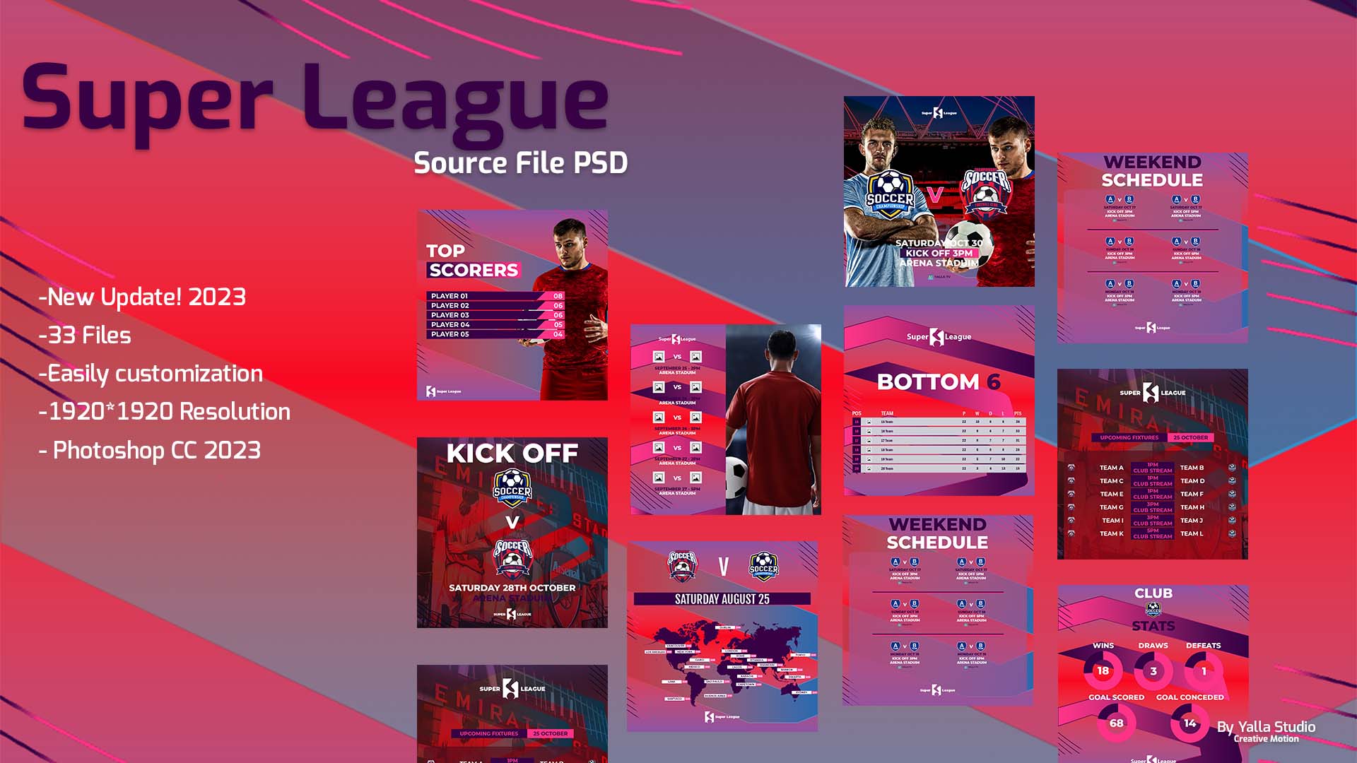 Super League PSDFlyer Pack – 33 Flyer – Perfect for your football team match. This template is very easy to use and flexible. You can change the color, edit the text, and transform each element easily. Total freedom for your creativity and save more of your time.