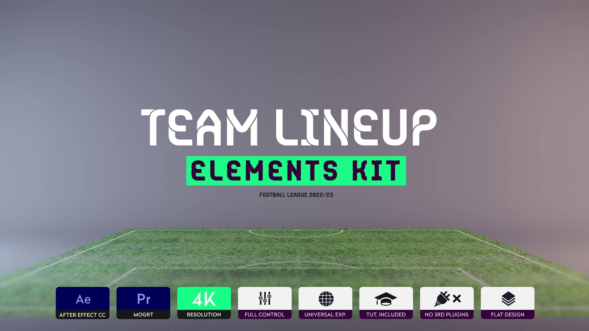 Broadcasting Sports Lineup Team 11VS11 created for a Soccer Championship. Package includes Line Up 11VS11 elements needed for On-air live broadcasting. Super easy to customize, choose your text layer and update the required text, add your own images and video and you are done! All editing is done with The Essential Graphics panel in Premiere Pro andAfter Effects for ultimate familiarity and ease of use.