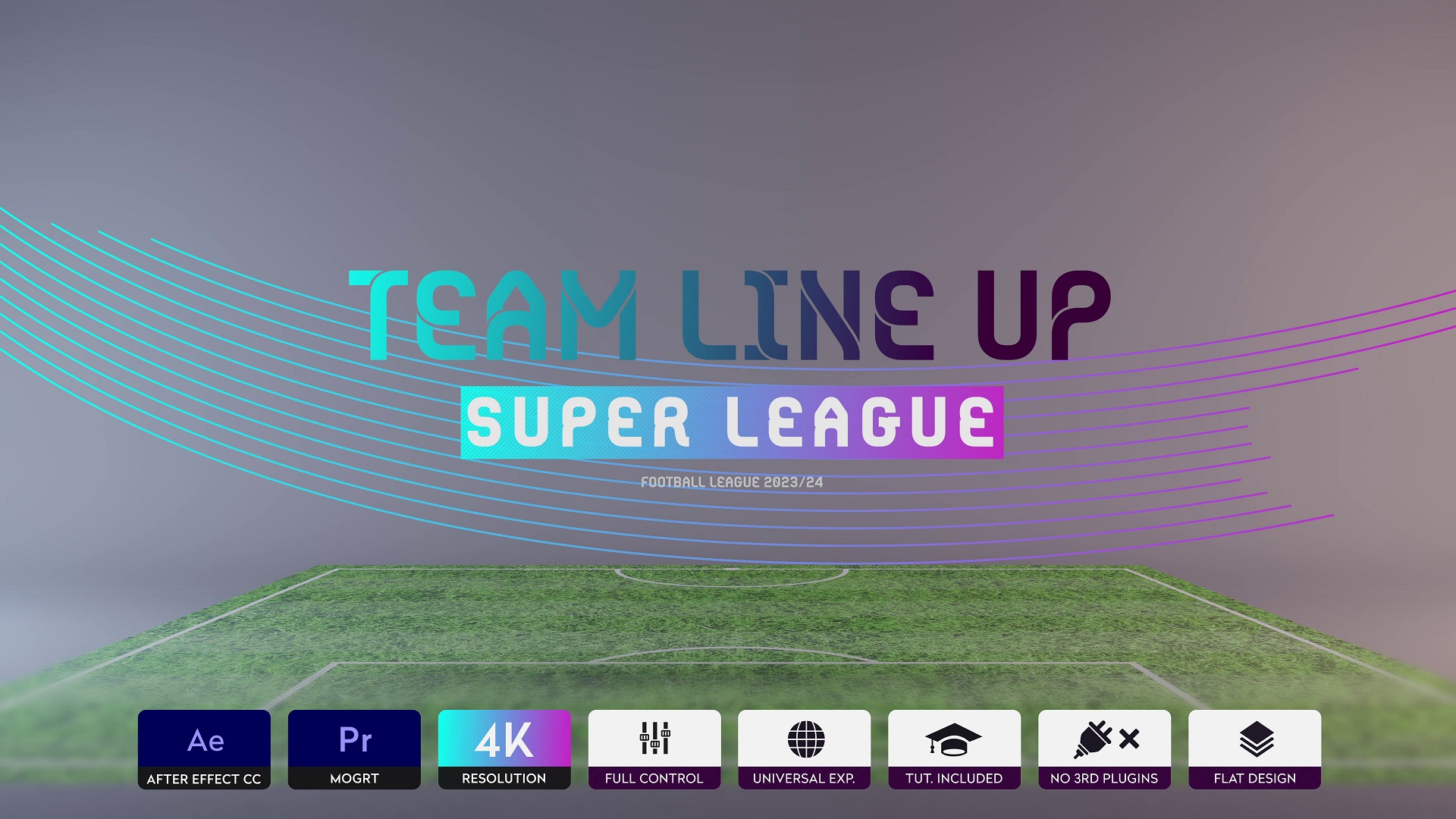 Team Line Up | Super League Broadcast Package created for a Soccer Championship. Package includes Line Up 11VS11 elements needed for On-air live broadcasting. Super easy to customize, choose your text layer and update the required text, add your own images and video and you are done! All editing is done with The Essential Graphics panel in Premiere Pro andAfter Effects for ultimate familiarity and ease of use.