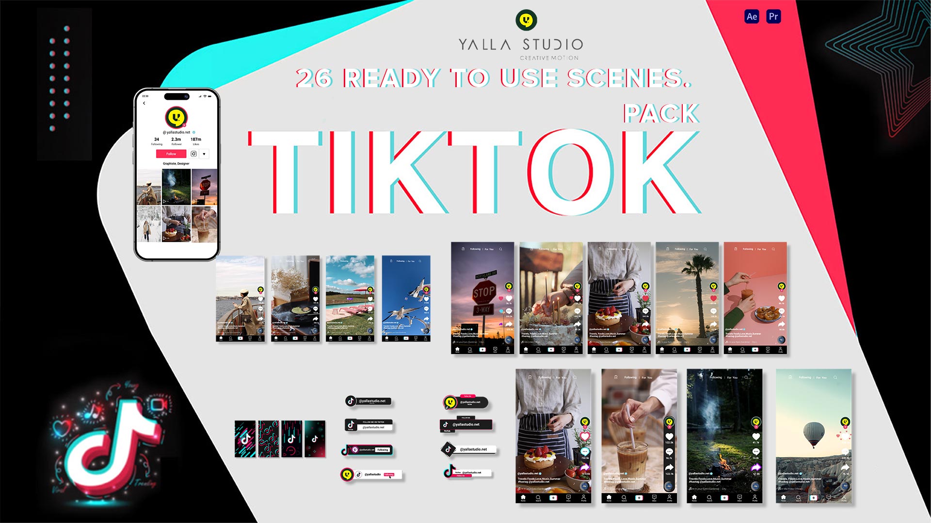 TikTok Graphics Pack | MOGRT for Premiere Pro is a powerful tool to engage your audience and provide more interactions. 26 Ready to use scenes. Premiere Pro template works with Premiere Pro CC2023 and newer. Optimized for TikTok social media.
