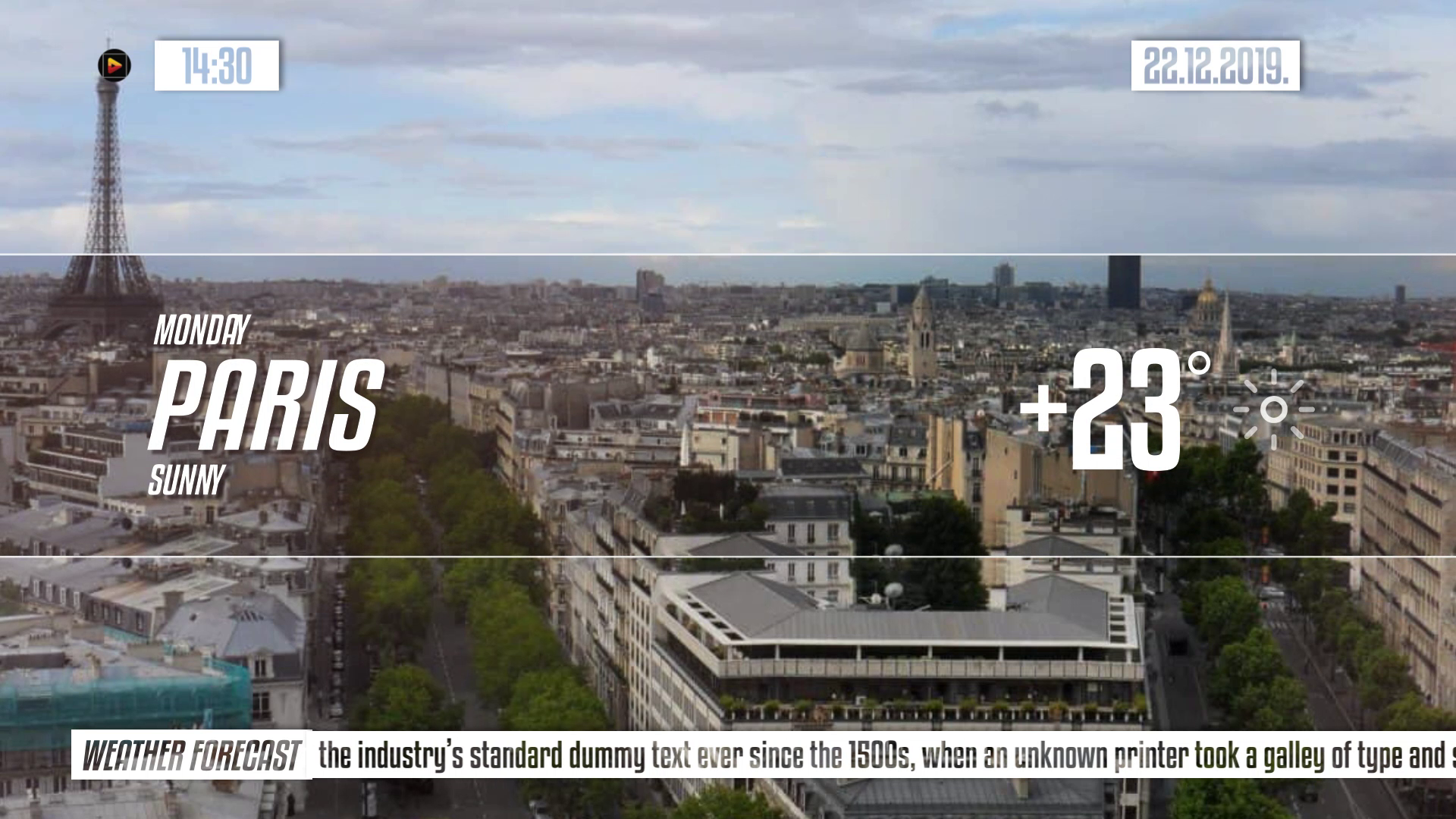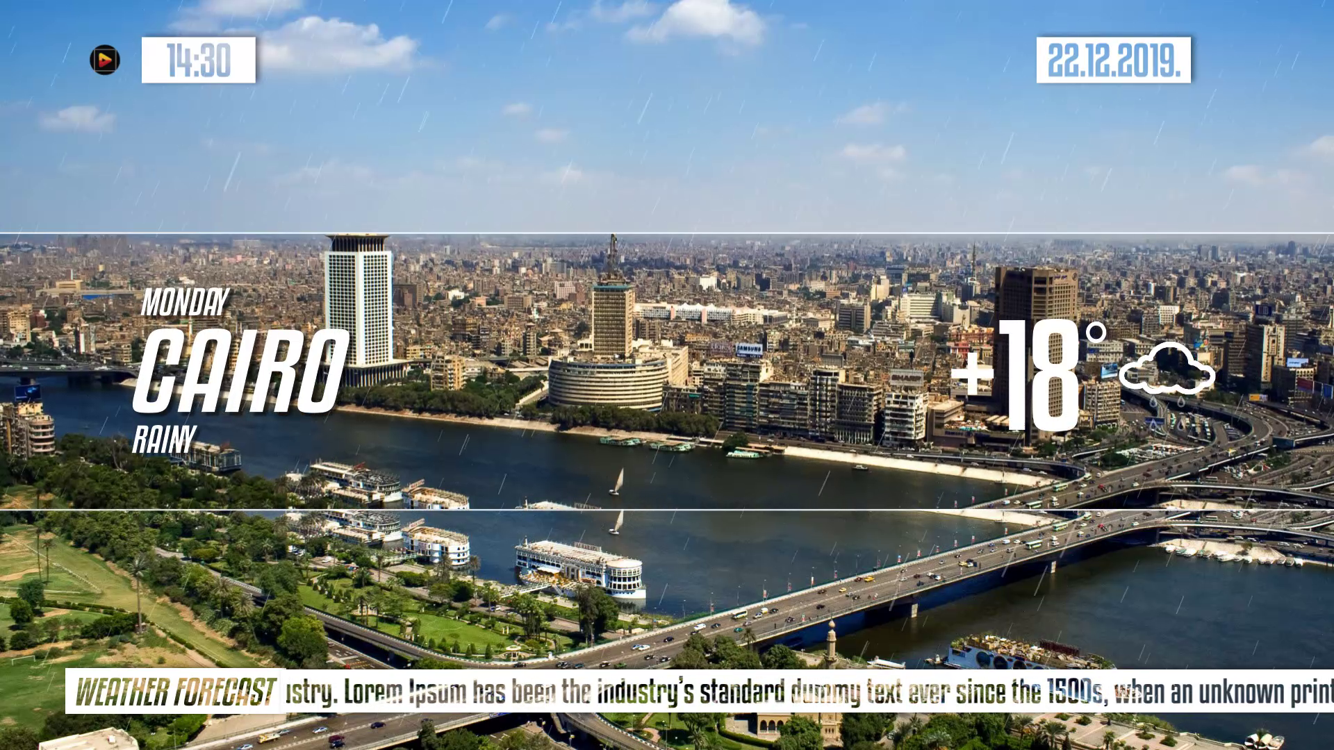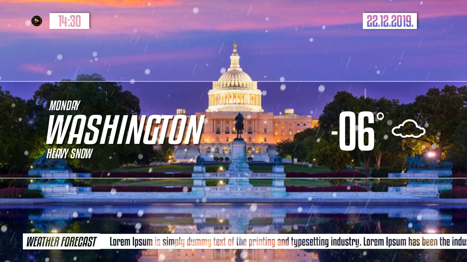 Clean and light weather forecast pack is a nice looking After Effects template and a great way of presenting your weather report on your broadcasting platform. It’s so easy to use with 186 editable text layers, 30 image/video placeholders, 1 logo placeholder. It also contains 8 different weather icons, 4 weather styles and 3 types of weather animations. You can choose any combination to make your own cool looking weather report. Impress your audience with this up to date and dynamically animated AE template.